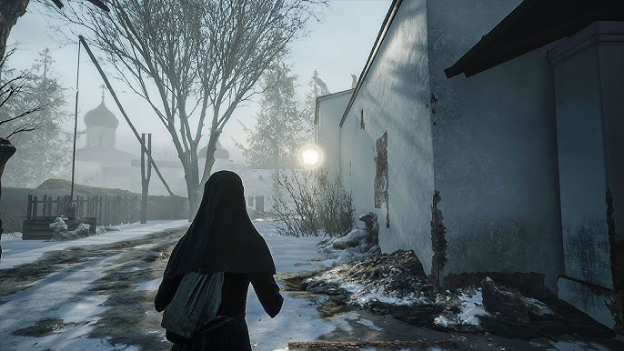 Los planos, la fotografía, los colores se notan realmente pensados y cuidados. Un momento donde esto puede apreciarse más es cuando Indika se sienta en algún sitio. Sentarse no cumple ninguna función en el juego, pero habilita la posibilidad de contemplar con distintas tomas y planos, el escenario que rodea a nuestra protagonista. Y se ve realmente hermoso.